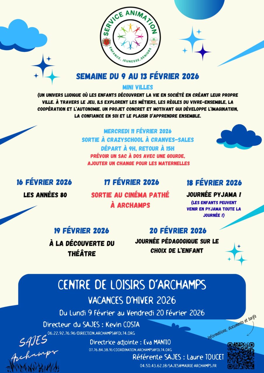 Pour toutes questions relatives à l’inscription et/ou au suivi administratif, merci de contacter le service enfance jeunesse à l’adresse suivante: sajes@mairie-archamps.fr – 04 50 43 62 18
