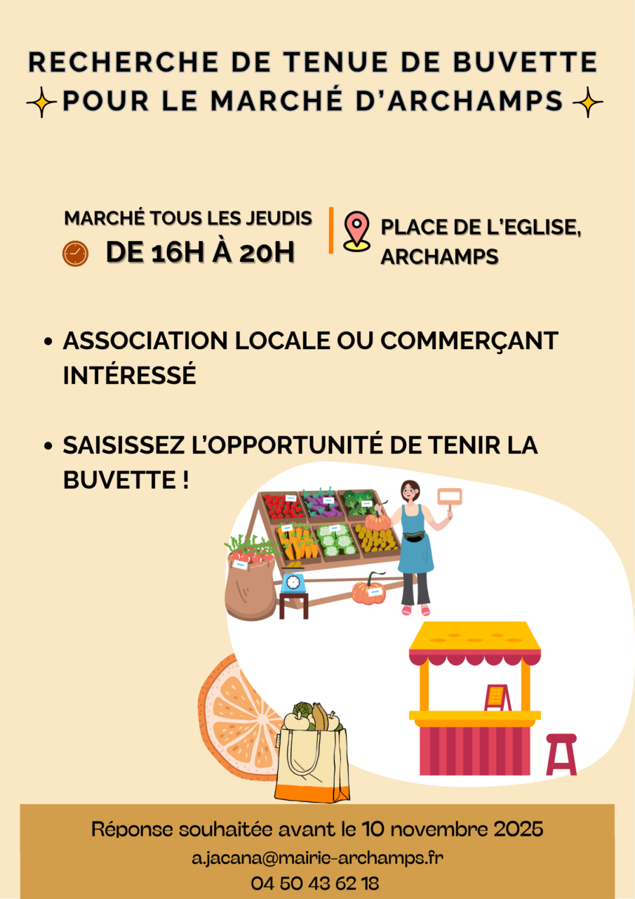 La mairie recherche un exploitant de buvette pour le marché hebdomadaire.